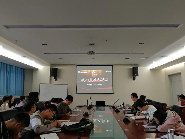 2019年11月21日下午,按照上级党委的要求,中共宁夏光伏材料重点实验室党支部在科技楼A610会议室组织召开第九次“不忘初心、牢记使命”主题教育,集体观看了专题纪录片《我们走在大路上》的“统一大业”和“辉煌新时代”两集。《我们走在大路上》是为隆重庆祝中华人民共和国成立70周年,由中央宣传部、中央党史和文献研究院等部门共同摄制的大型文献专题片,全景式展现了70年来新中国风雨兼程、砥砺前行的伟大历程,讲述了中国人民筚路蓝缕、砥砺奋进、一路走来的感人故事,展现了中华民族从站起来、富起来到强起来的伟大飞跃。全体研究生参加,活动由实验室团支部书记、研究生分会主席高雪梅同志主持。