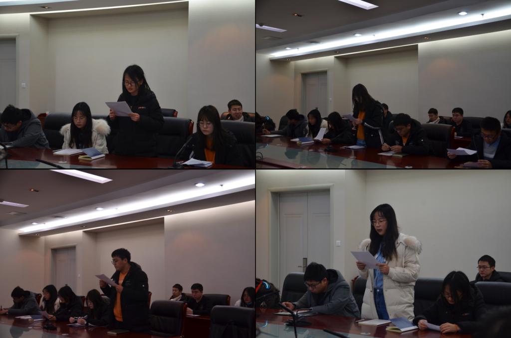 12月18日,中共光伏材料重点实验室党支部在科技楼A601会议室召开支部大会,讨论接收马明远、王宇欢、黄蓉、李瑞、任基宁五位同志为预备党员事宜。会议由支部组织委员马薇同志主持,全体师生党员参会。