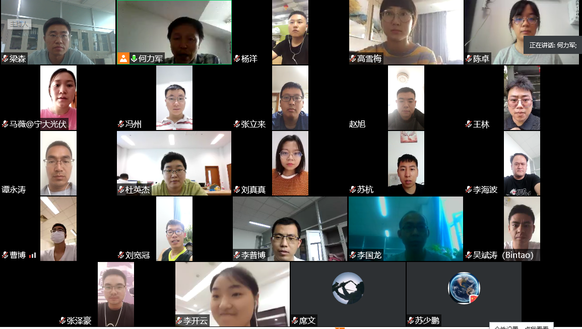 7月22日下午,宁夏光伏材料重点实验室党支部召开支部扩大会议,学习习近平总书记视察宁夏重要讲话精神。会议以腾讯会议为平台,支部全体党员和实验室非党员教师参加。梁森同志、李国龙同志领学,支部书记何力军同志主持。