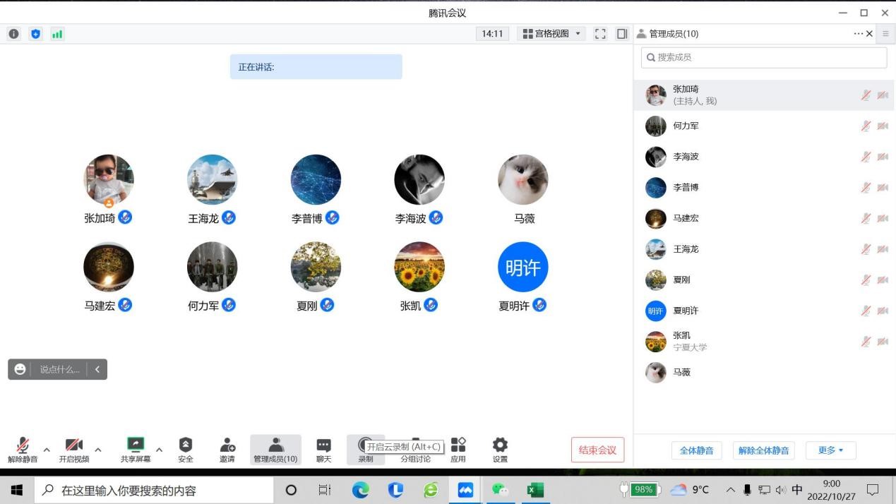2022年10月27日上午,学院通过线上形式召开直属党支部委员会理论学习中心组第五次学习会,会议由直属党支部书记马建宏同志主持,常务副院长何力军同志领学,直属党支部委员、各党小组组长、各办公室负责人以及教师代表参加会议。