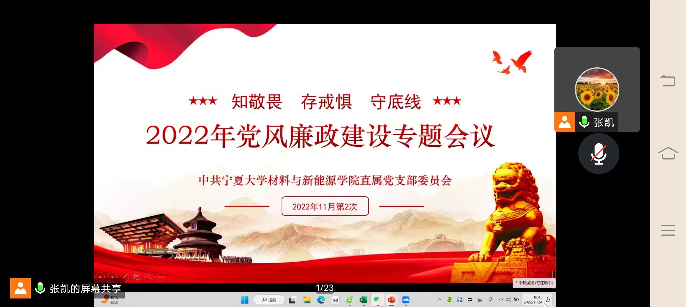 为深入学习习近平新时代中国特色社会主义思想,聚焦党规党纪,2022年11月25日晚上,学院通过线上会议形式开展学生廉洁教育活动。辅导员张凯主持会议,学院全体本科生参加。