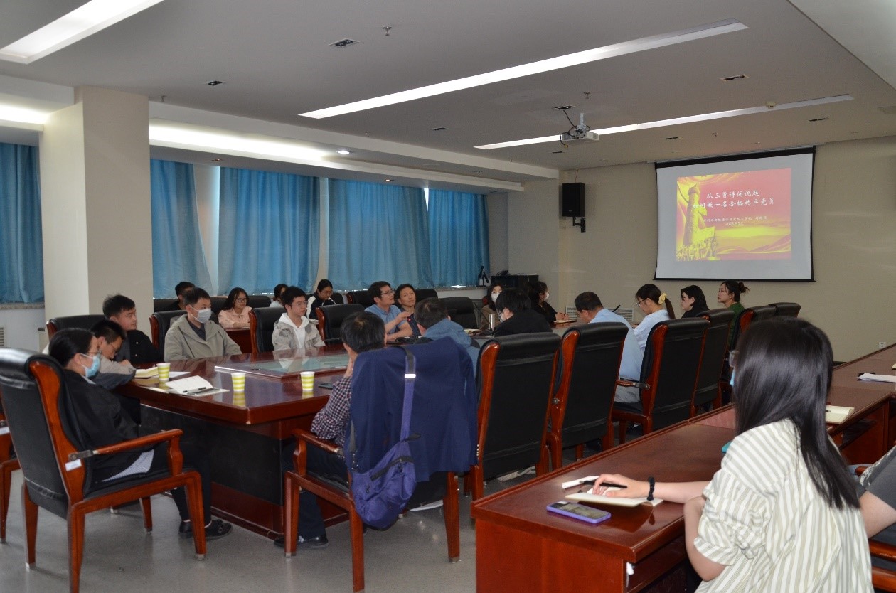 党总支书记刘国强以“从三首诗词说起谈谈如何做一名合格共产党员”为题,为学院全体党员讲授党课。