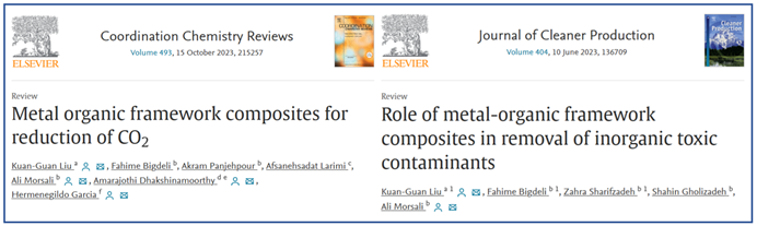 贺兰山讲席学者Ali Morsali教授先后在国际期刊⟪Coordination Chemistry Reviews⟫(IF = 24.833,中科院一区TOP)和⟪Journal of Cleaner Production⟫(IF = 11.072,中科院一区TOP)上发表题为“Metal organic framework composites for reduction of CO2”和“Role of metal-organic framework composites in removal of inorganic toxic contaminants”的高水平综述文章。九游娱乐