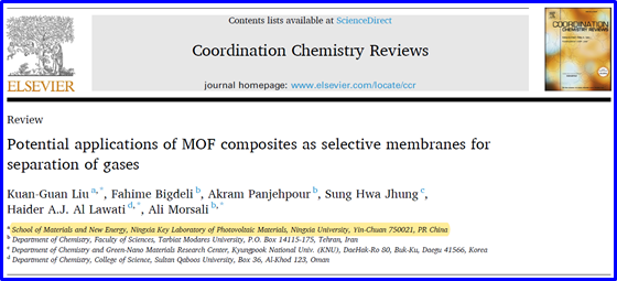 近日,九游娱乐Ali Morsali教授、刘宽冠教授在国际期刊⟪Coordination Chemistry Reviews⟫(IF = 20.06,中科院一区TOP)上发表了题为“Potential applications of MOF composites as selective membranes for separation of gases”的高水平综述文章。九游娱乐
