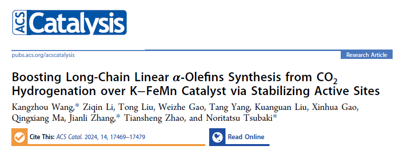 王康洲课题组在CO2转化新型催化材料研究中取得重要研究进展。该工作以“Boosting Long-Chain Linear α‒Olefins Synthesis from CO2Hydrogenation over K‒FeMnCatalyst via Stabilizing Active Sites”为题发表在催化领域国际顶级期刊《ACS Catalysis》(Q1/IF11.3),九游娱乐