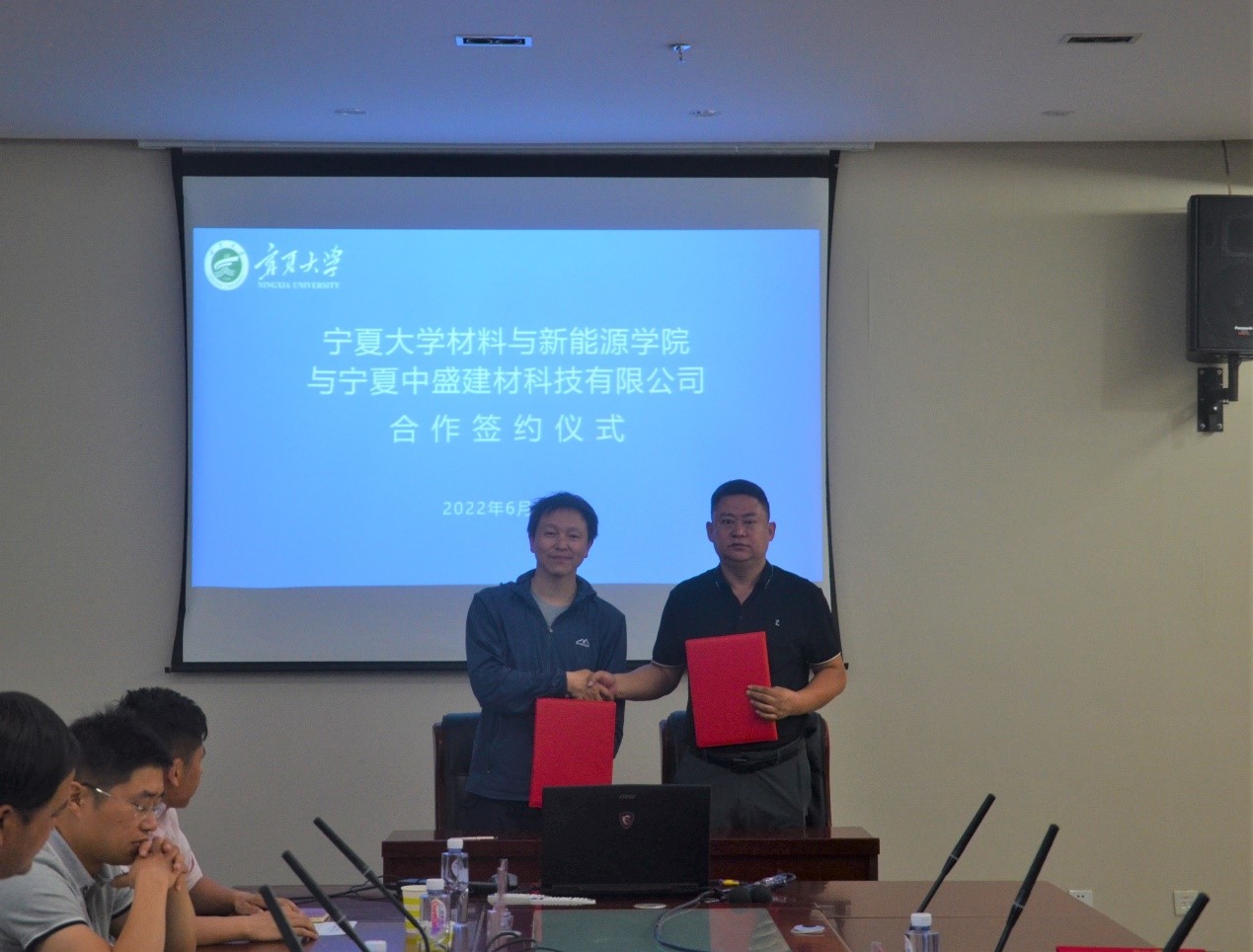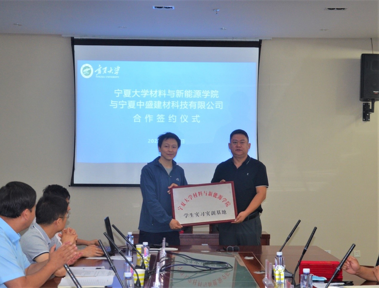 与宁夏中盛建材科技有限公司(以下简称“中盛建材”)签约仪式及交流会在科技楼A610会议室举行,常务副院长何力军、宁夏中盛建材科技有限公司董事长吴玉华、董事长助理贾云森及学院教师和企业技术专家出席,会议由副院长李海波主持。