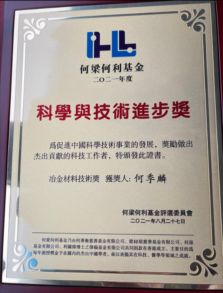 名誉院长何季麟荣获2021年度何梁何利基金“科学与技术进步奖”。