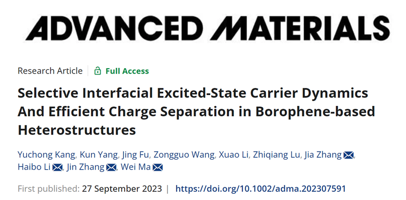近日,我校在二维范德瓦尔斯异质结载流子动力学研究领域取得重要研究进展,有关成果以《Selective Interfacial Excited-State Carrier Dynamics And Efficient Charge Separation in Borophene-based Heterostructures》为题发表于材料学国际顶级期刊《Advanced Materials》(IF=32.08,中科院一区TOP)上,九游娱乐