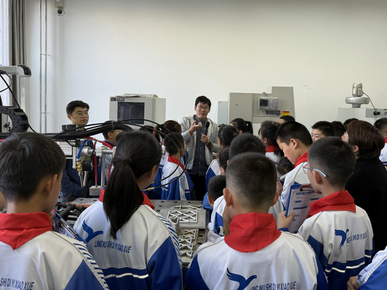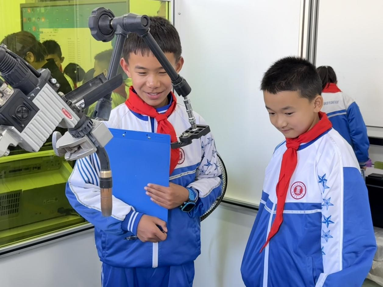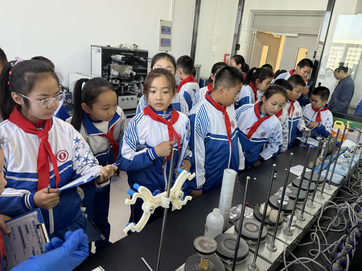 “3D打印可以打印出人类的骨骼吗”“材料是什么啊”“做实验会有危险吗”“传感器是干什么用的”“新材料新在哪里”“机器制造和手工制造有什么区别”......同学们边参观边提问,提出了一系列关心关注的问题。老师们以及实验室的研究生为孩子们一一作出解答。