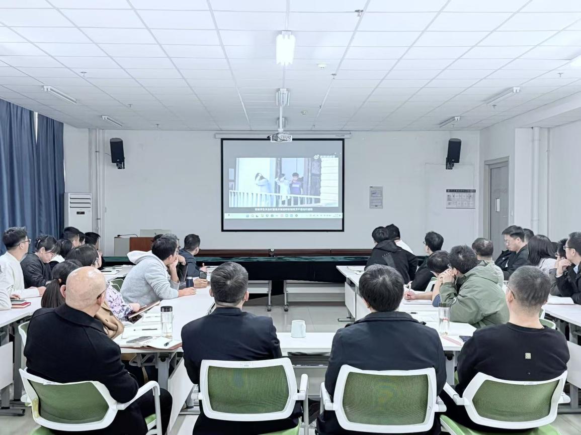 会后,全体教职工一同观看了地震应急综合演练逃生科普教育片。