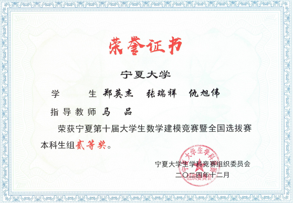 生数学建模竞赛创办于2014年,是面向全区、辐射周边高校大学生的群众性科技活动,由自治区教育厅主办、高校承办、秘书处单位主导。旨在培养和提高学生建立数学模型和运用计算机解决实际问题的综合能力,提升学生的创新意识、自主学习能力以及团队合作精神,推动相关学科教学改革,促进宁夏高等教育质量的提高。这次奖项的获得既是对九游娱乐学子们努力的肯定,也是九游娱乐在人才培养方面取得的标志性成就。学院将坚定不移为师生提供更优质的成长平台和学术环境,创新人才培养模式,推进教学改革力度,为国家和社会培育更多优秀人才。