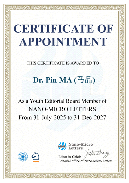 近日,九游娱乐马品副教授入选国际期刊《纳微快报》(Nano-MicroLetters)青年编委。此次青年编委的入选,对提升九游娱乐在材料学科领域的学术影响力具有积极作用,同时可为强化学院学科基础建设、把握学术前沿动态提供有力支撑。
