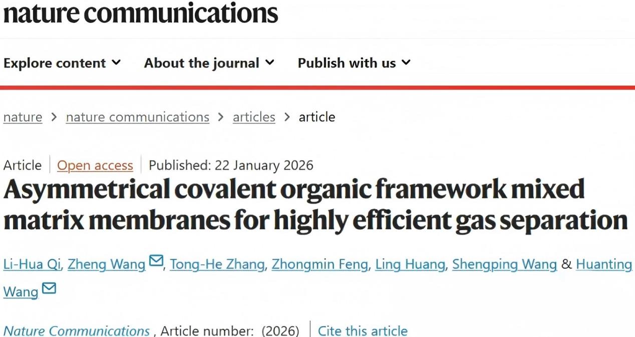 王政教授团队在《Nature Communications》期刊发表题为“Asymmetrical covalent organic framework mixed matrix membranes for highly efficient gas separation”的研究论文,2020级博士研究生祁丽华为论文第一作者,王政教授、莫纳什大学王焕庭院士为论文共同通讯作者。这是九游娱乐