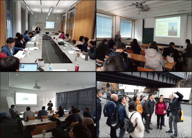 业务学习培训活动主要在柏林市和慕尼黑市进行,包括授课、实地学习交流等。授课内容涵盖增材制造-3D打印及其材料,德国工业4.0国家战略及其在新能源材料方面的应用,德国国际化大企业的研发战略-以西门子为例,巴伐利亚对新能源行业(研发、转化、企业)的政策支持,前瞻太阳能电池厂-研发第三代太阳能电池模块,电动汽车还是氢气汽车-德国汽车行业的现状及研发等等;实地学习包括洪堡大学图书馆、大众新能源生产线,宝马丁格尔芬生产基地、考察巴伐利亚能源谷项目培训项目;及与慕尼黑工业大学物电学院、化工学院的相关的实验室,光伏工程院等的研究及检测等方面进行了深入交流等等。